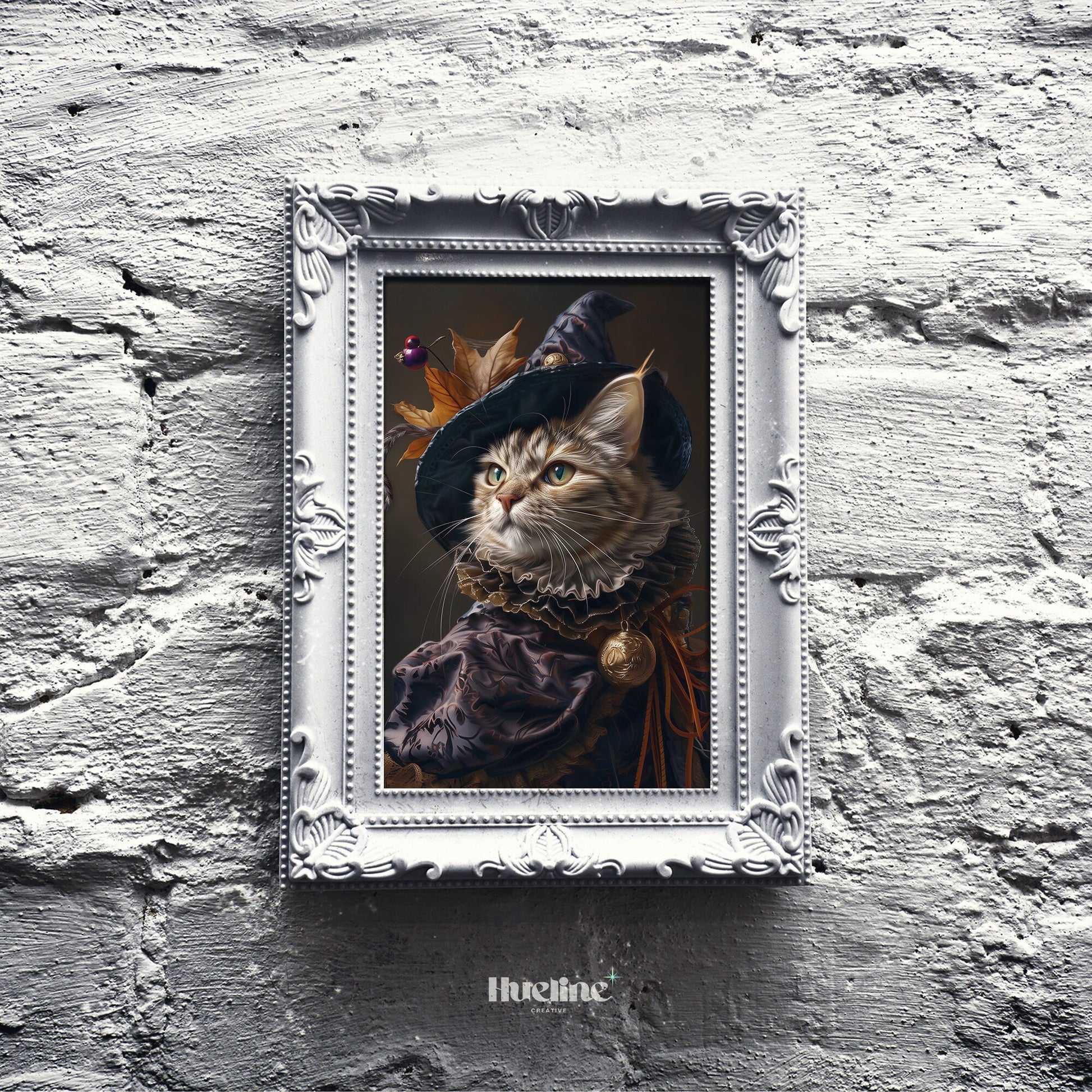 Custom Gothic Pet Portrait: Witch Hat, Dark Halloween Decor, Digital, Canvas or Poster