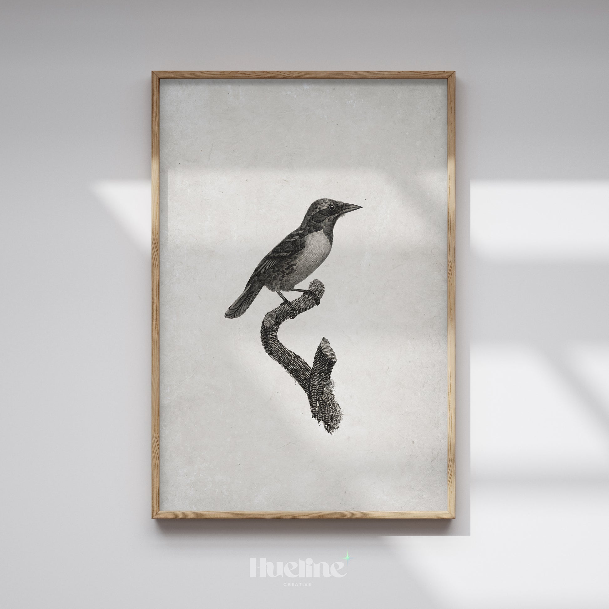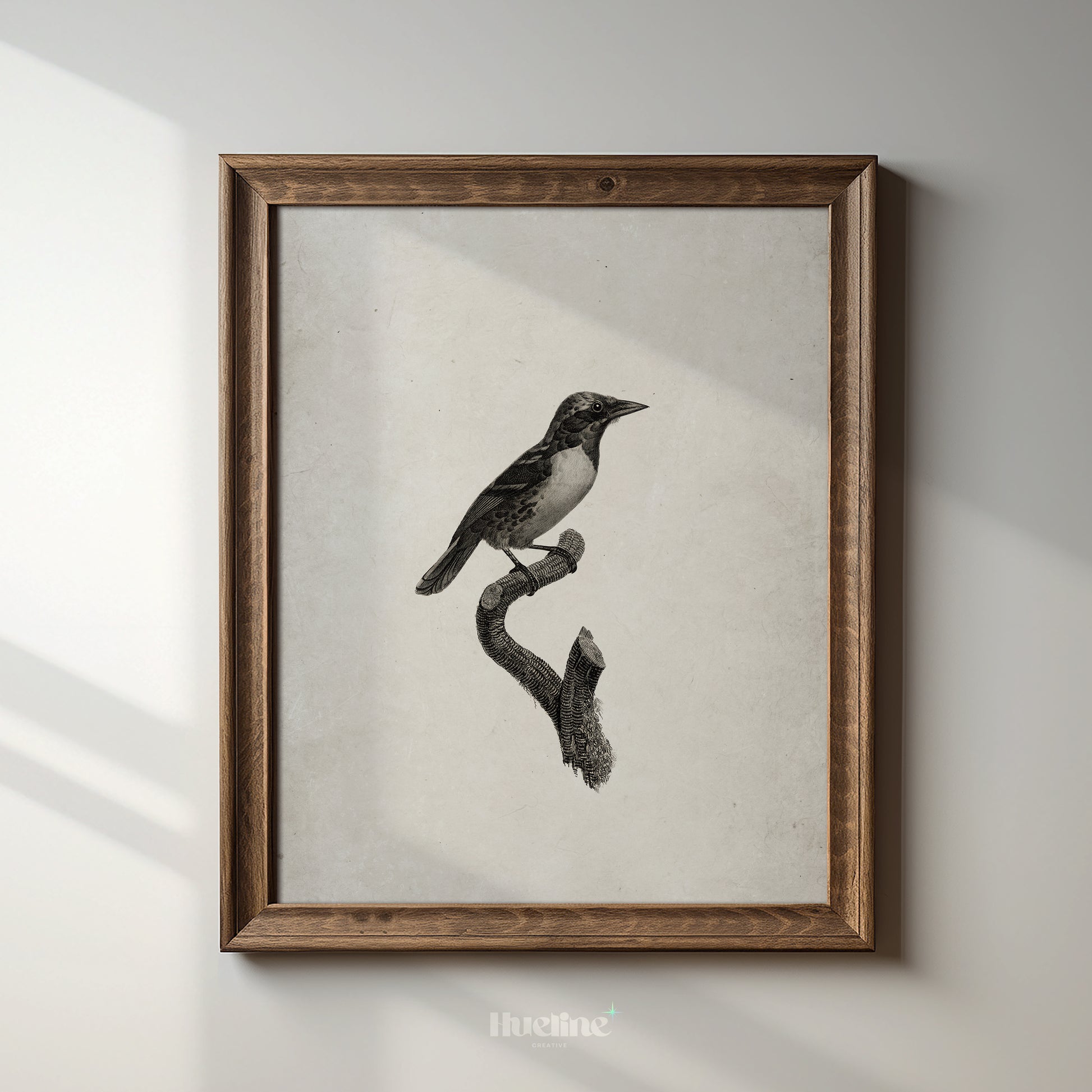 Add a touch of timeless charm to your home with this vintage bird illustration. The detailed black and white drawing captures the beauty of nature in a classic style, making it ideal for living rooms, studies, or farmhouse-inspired spaces. A perfect gift for bird watchers and art lovers, this print brings elegance and simplicity to any wall.