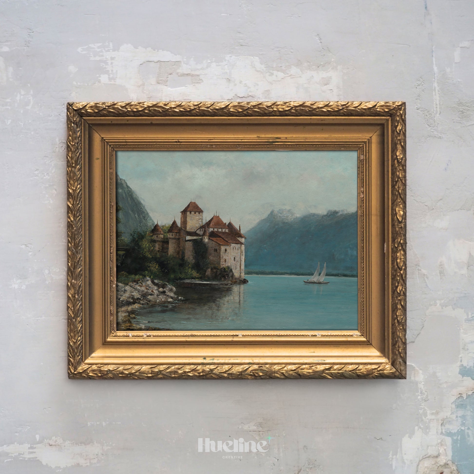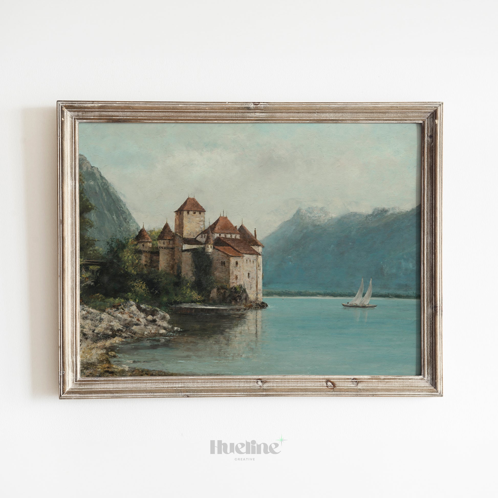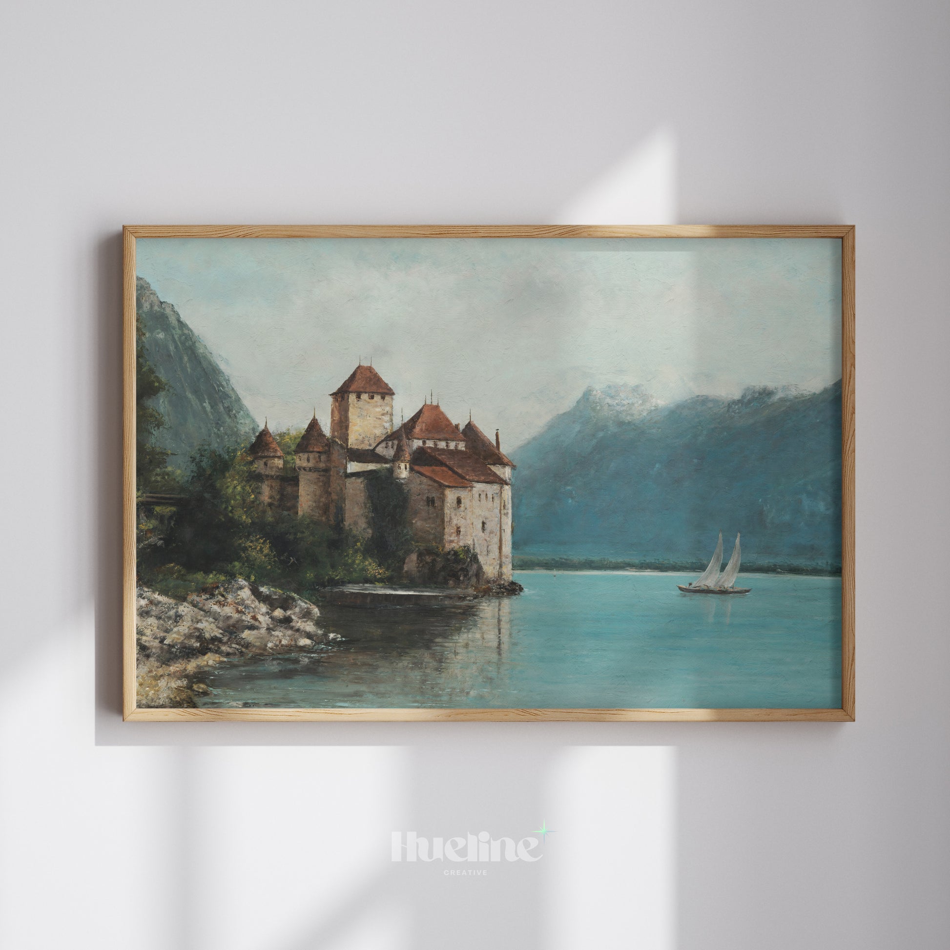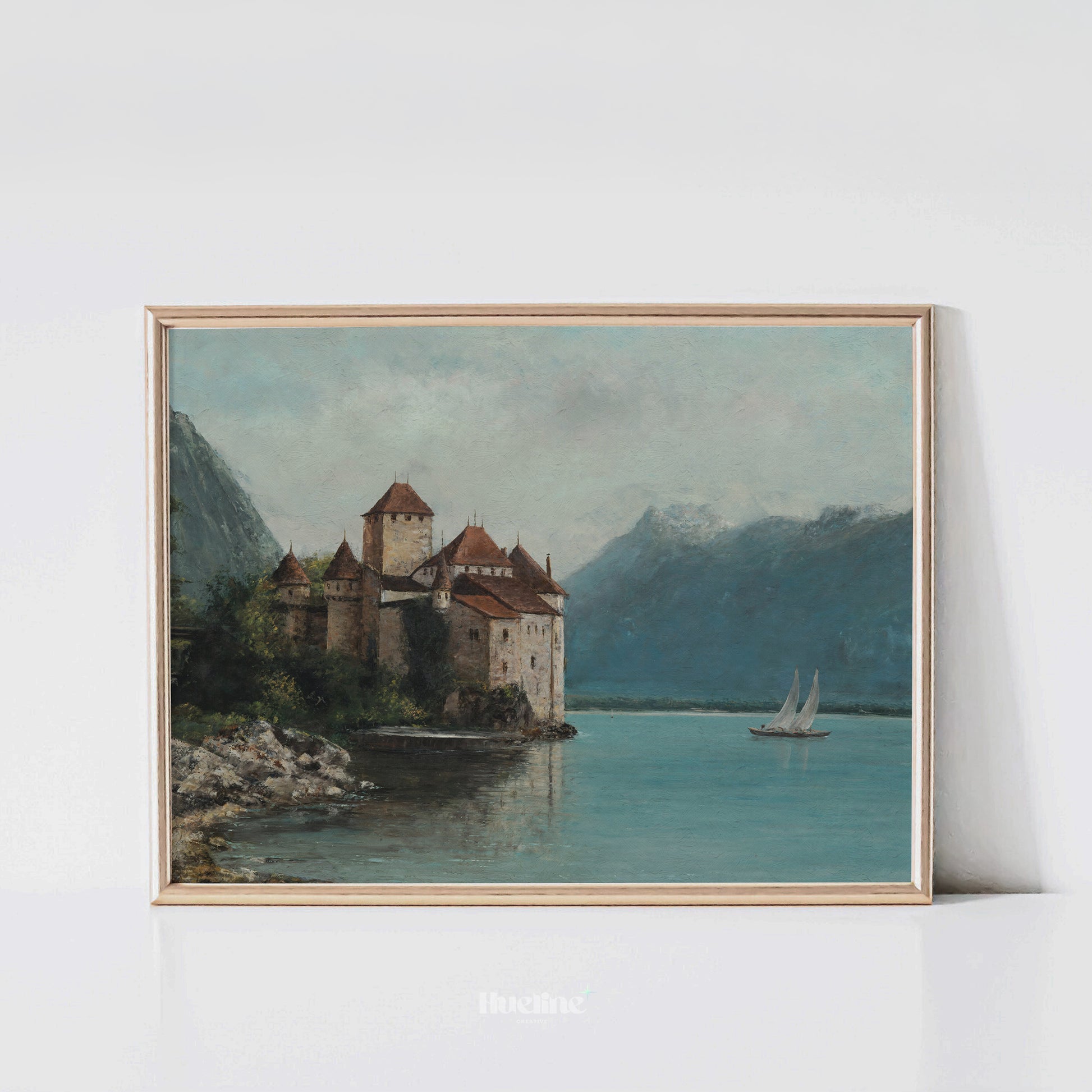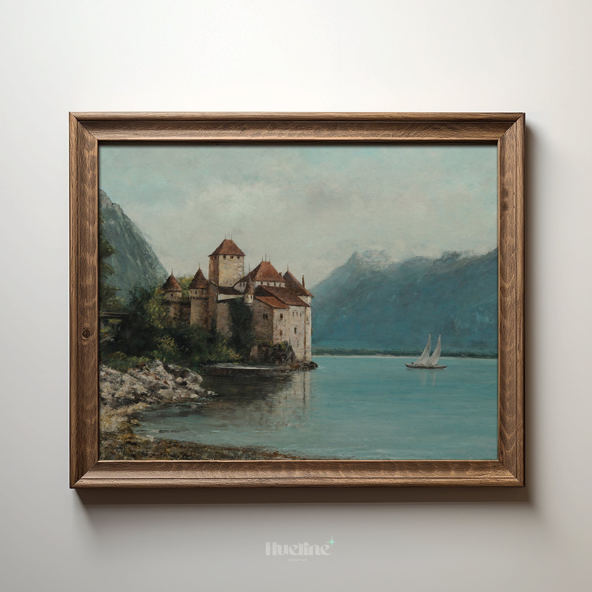 Bring history and elegance into your home with this vintage castle painting. Surrounded by mountains and a tranquil lake with a passing sailboat, this artwork captures a serene yet majestic atmosphere. Perfect for living rooms, studies, or as a unique gift, it’s a timeless piece for lovers of history, architecture, and fine art.