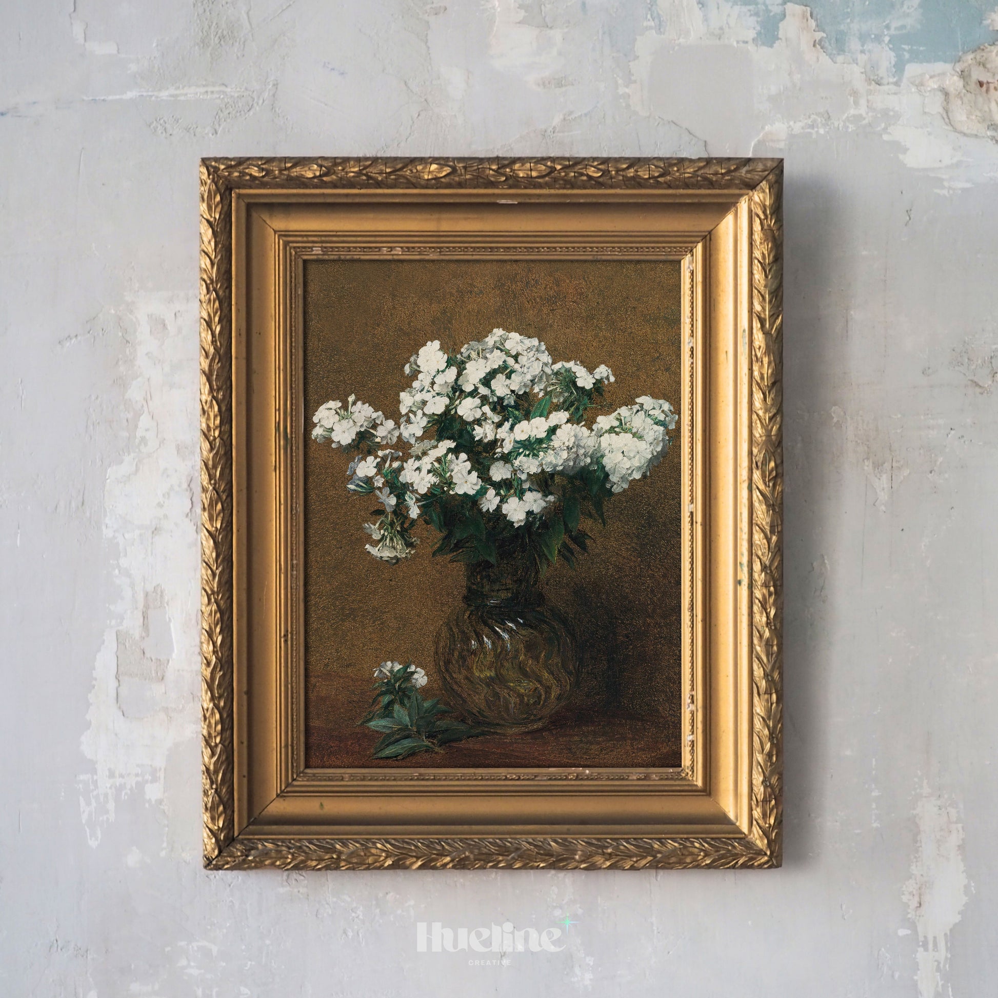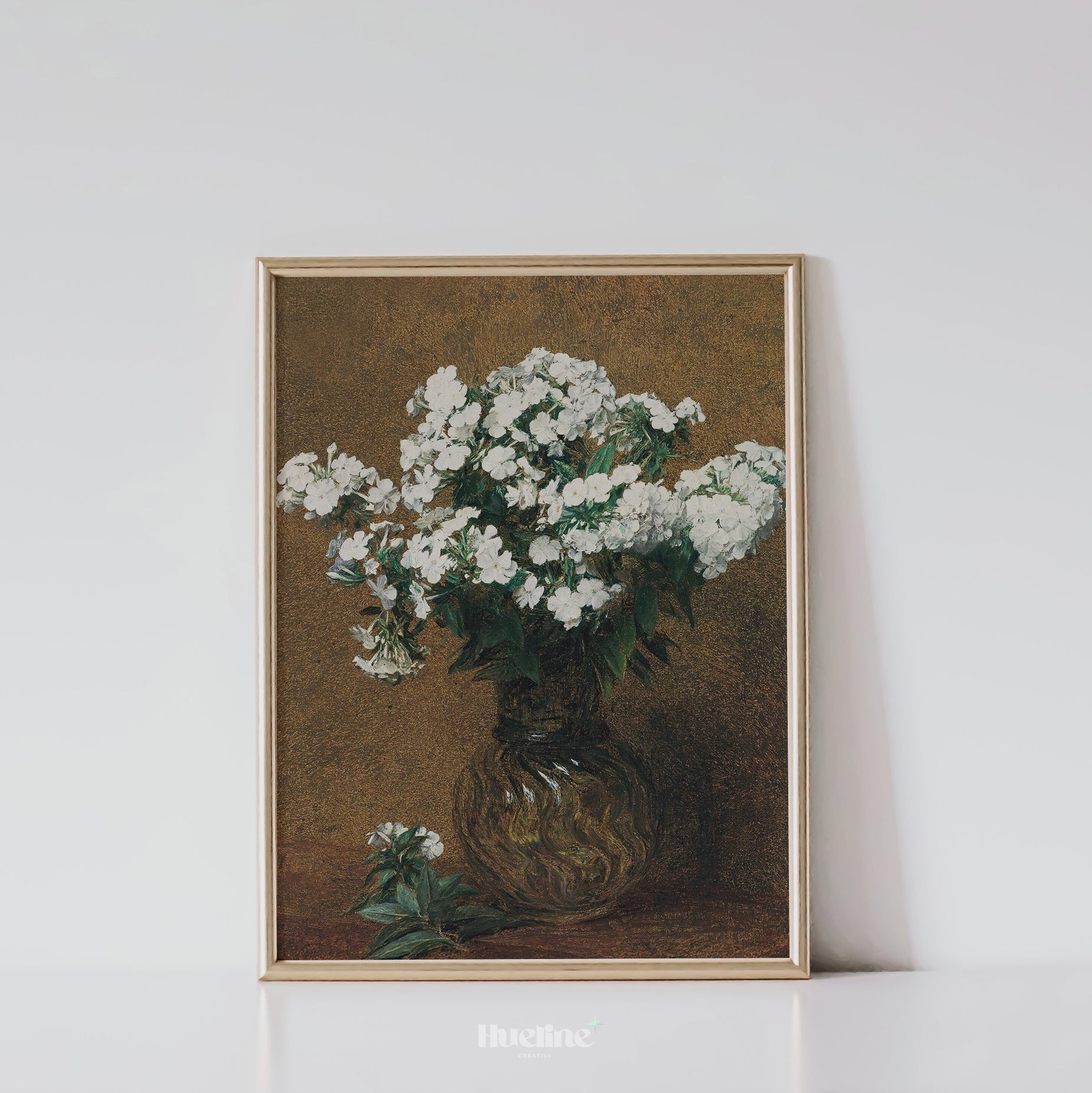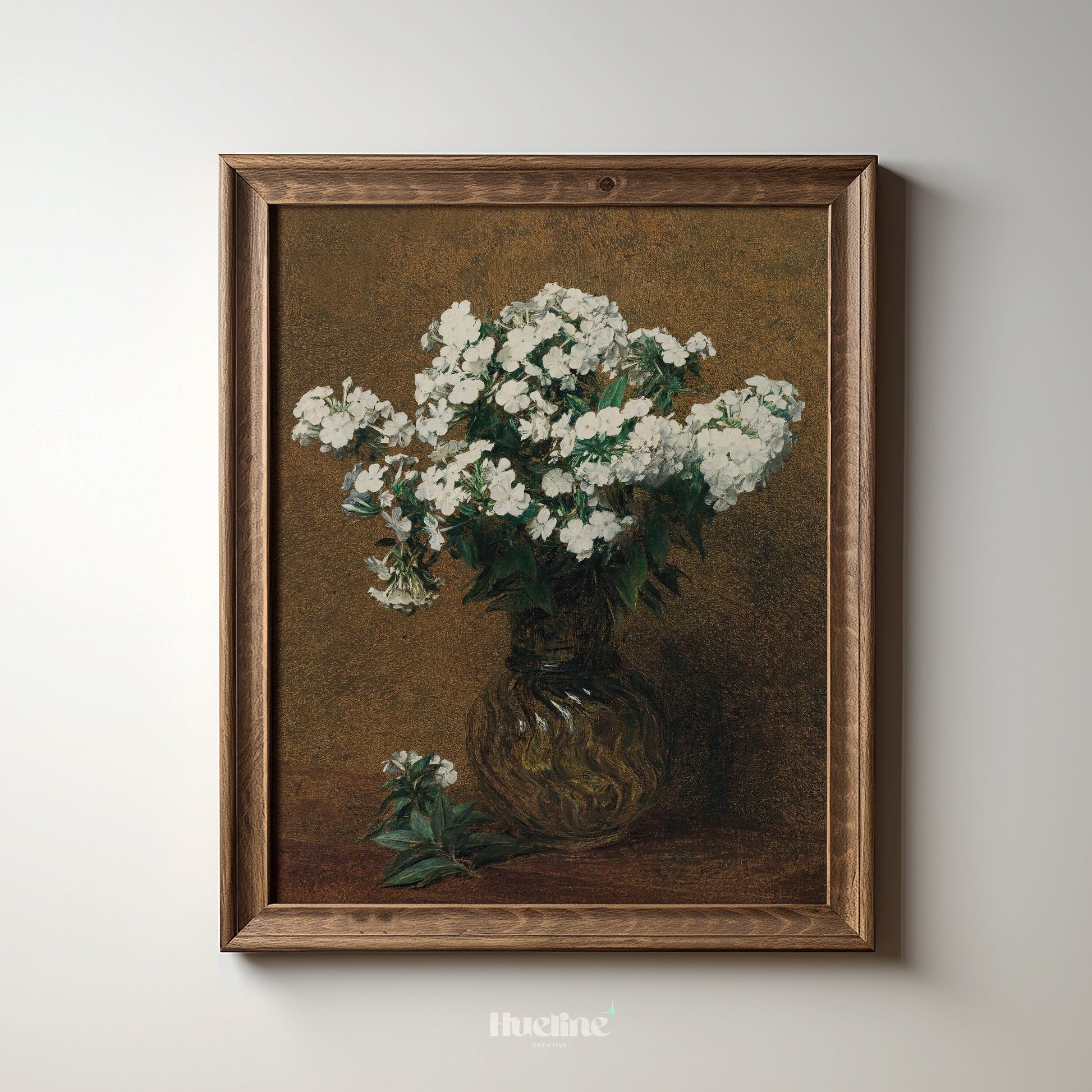 Vintage White Floral Wall Art | Classic Still Life Flower Painting Print - L1110